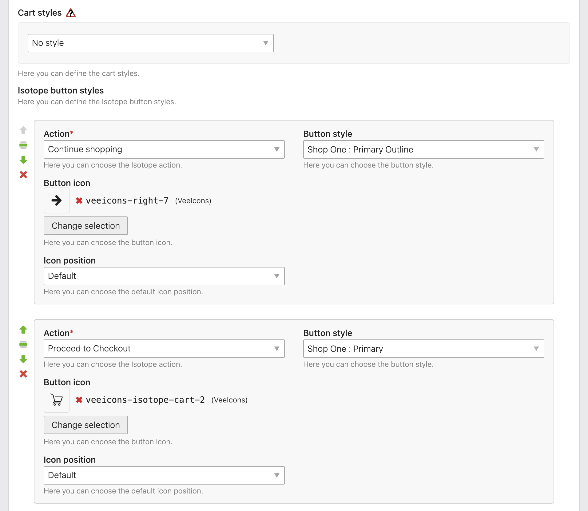 We have added Veello Theme features to almost all frontend modules Isotope eCommerce offers. The most essential feature that applies everywhere is custom styling using the Style presets. Some modules, like cart or product list/readers, have extra settings that will help you adjust the shop even more to your needs.