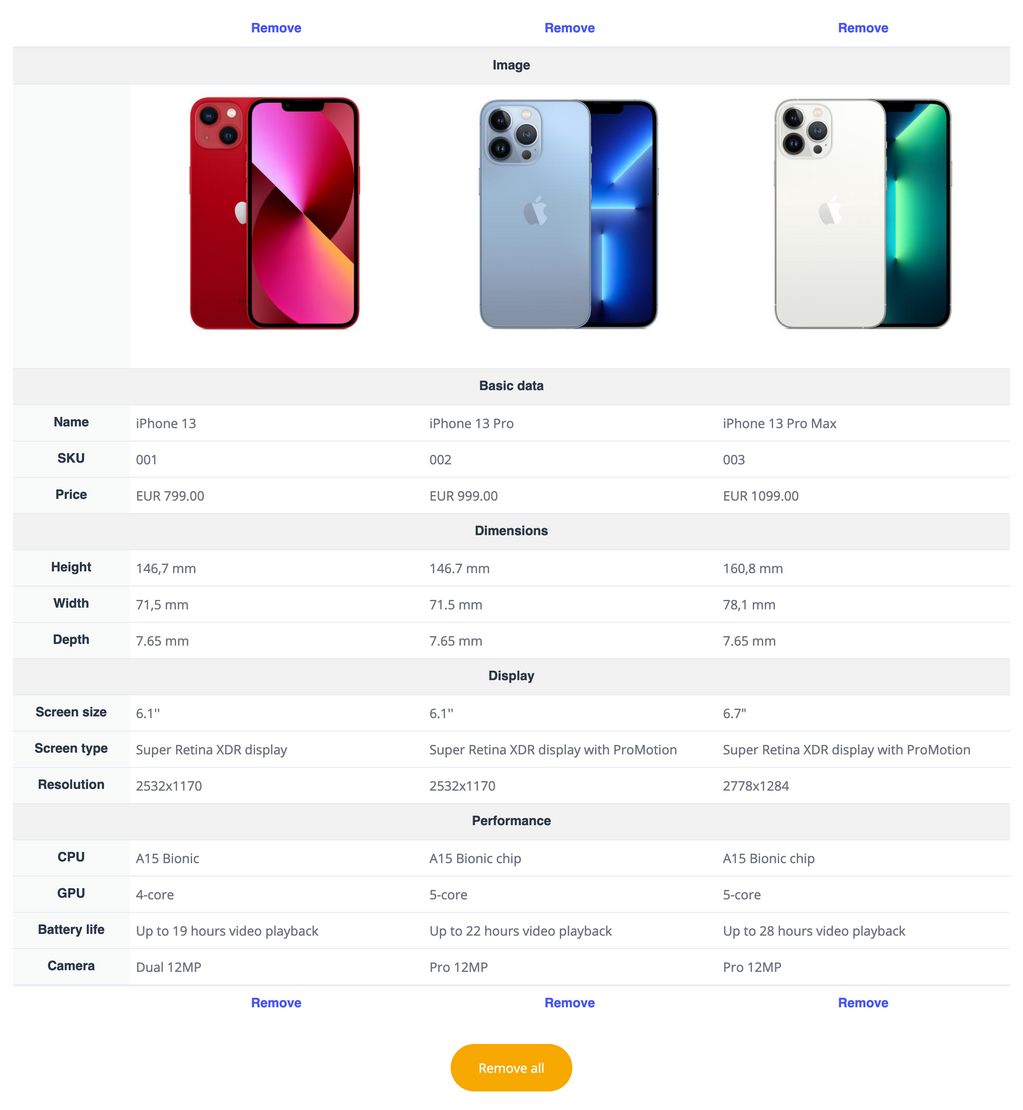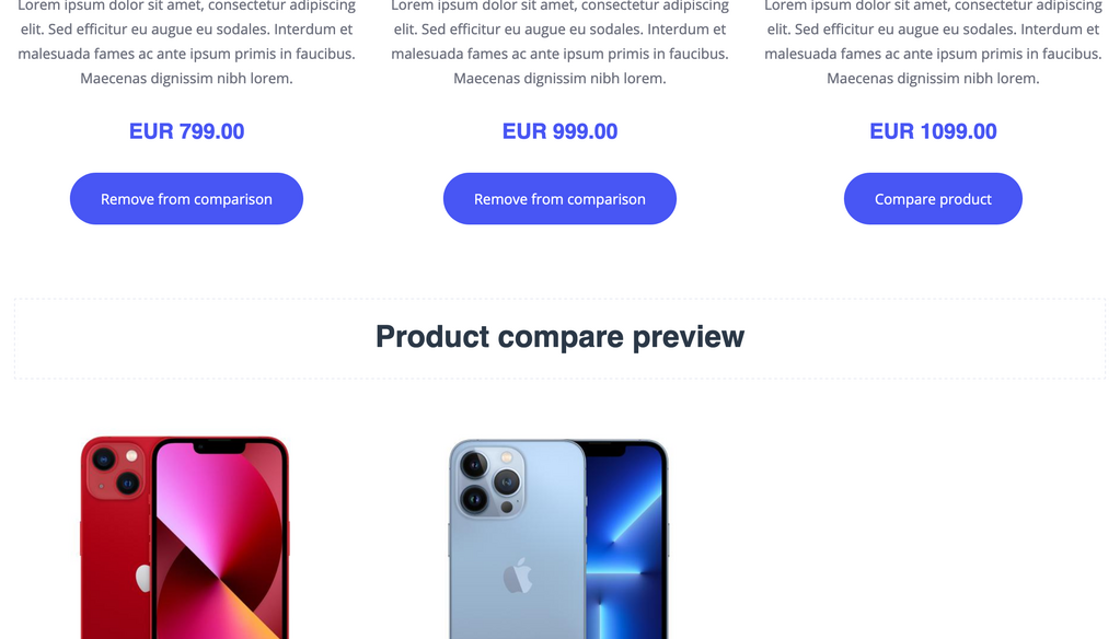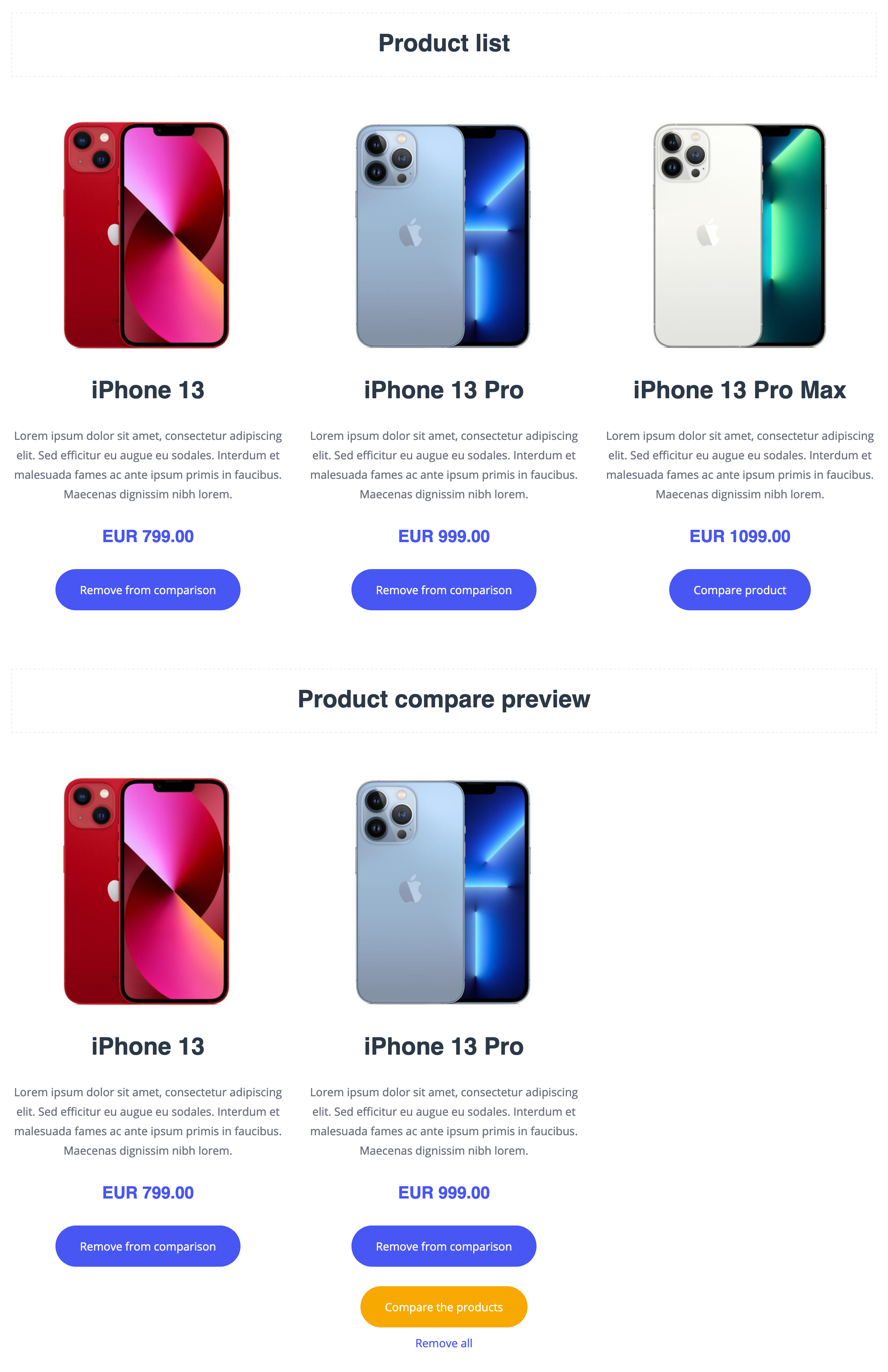 The product contains an extra preview module that allows you to collect and view the comparisons you’re designing.